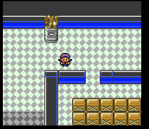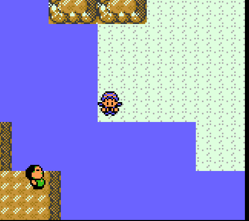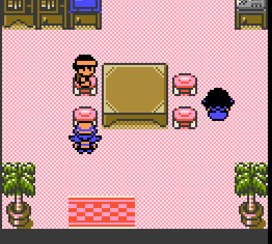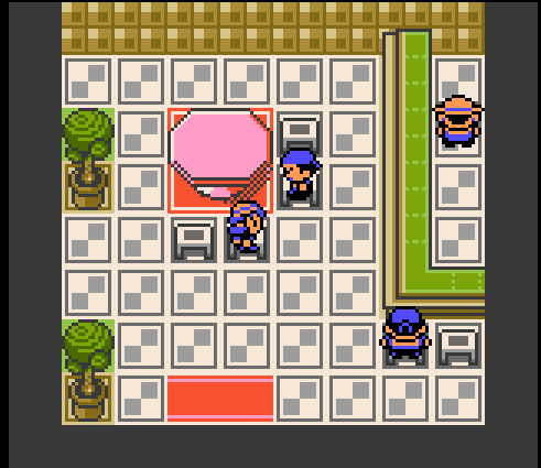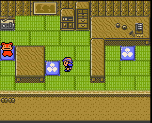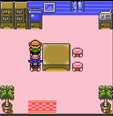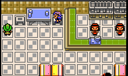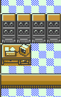 An entire room has been set up here. Ampharos is apparently a lighthouse worker. The bed must be for Jasmine when she was taking care of Amphy, unless Pokemon can also enjoy eggs, toast, and coffee. Very fun detail that the whole room flashes when you talk to Amphy. Amphy also has a color-shifted palette of the 'kaiju' overworld sprite.