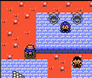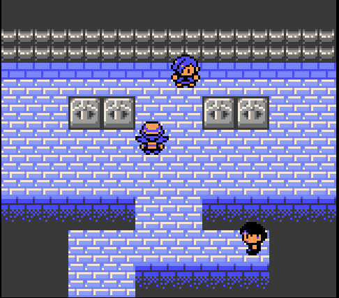 The animated lava is a nice touch. When I was a kid, a neighbor told me your game would be permanently corrupted if you stepped into the lava. This is obviously nonsense, but it freaked me out. I have to give Claire props for having lava inside an enclosed area, which matches Falkner's bottomless void for sheer danger. The Dragon heads are a nice touch.