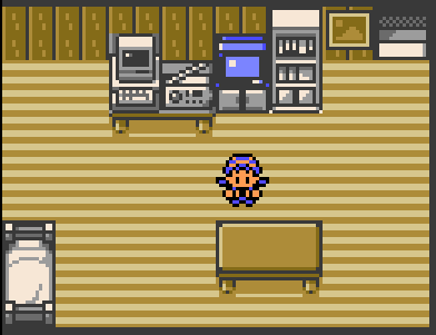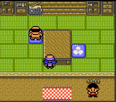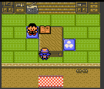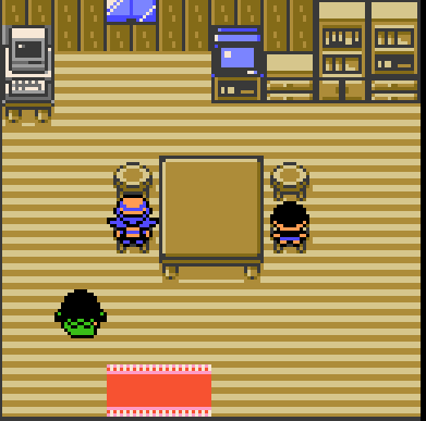 Within Johto, this wooden slat tiling is only found in New Bark Town. Elm's house and the player's house have it. These are the only two houses that have PCs. The rug also appears to be a unique fringed solid color rug.