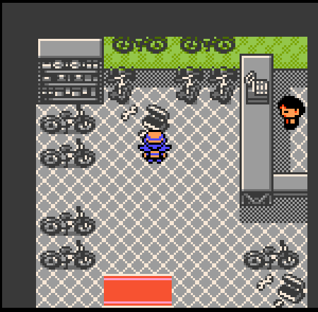 Bike shop has unique textures and same mat as Goldenrod Game Corner.