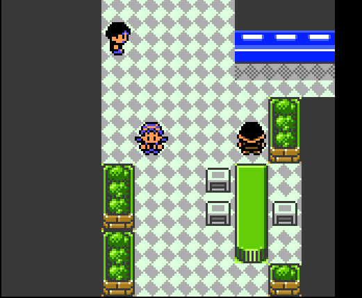 From the Gameboy Advance on, towns in Pokemon games have been able to have expanded and unique tilesets which lets each town have its own distinct look. The Gen II games were working with some important restrictions - limited tilesets, no ‘transparent’ tiles (you are either on top of a tile or not, but you cannot be partially behind a tile), and smaller color palettes. This means the designers had to come up with a way to make each area of the game unique using a relatively small set of reusable assets as well as a handful of unique ones. Placement of tiles is thus very important, as well as the ratio of tiles (paved road to grass to big trees to small trees).